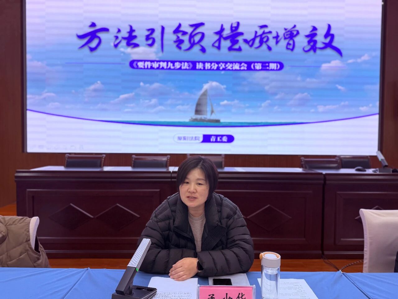 本期读书会由时文华法官主讲,聚焦《要件审判九步法》核心章节,结合真实案例拆解实务难点,重点围绕基层法院涉民生案件的办理实务,提炼出"问题预判-要件对应-风险规避"实操路径,精准破解办案卡点。孙舒宁等5位青年干警分享了实战经验,通过案例复盘展现九步法在疑难案件中的应用技巧;自由研讨环节,干警们围绕复杂案件适配性、快速掌握方法等话题踊跃发言,孟少华、时文华法官现场传经送宝,尤其是针对新入额法官提出的“庭审驾驭能力”提升进行了方法点拨,让参会干警直呼"干货满满"。