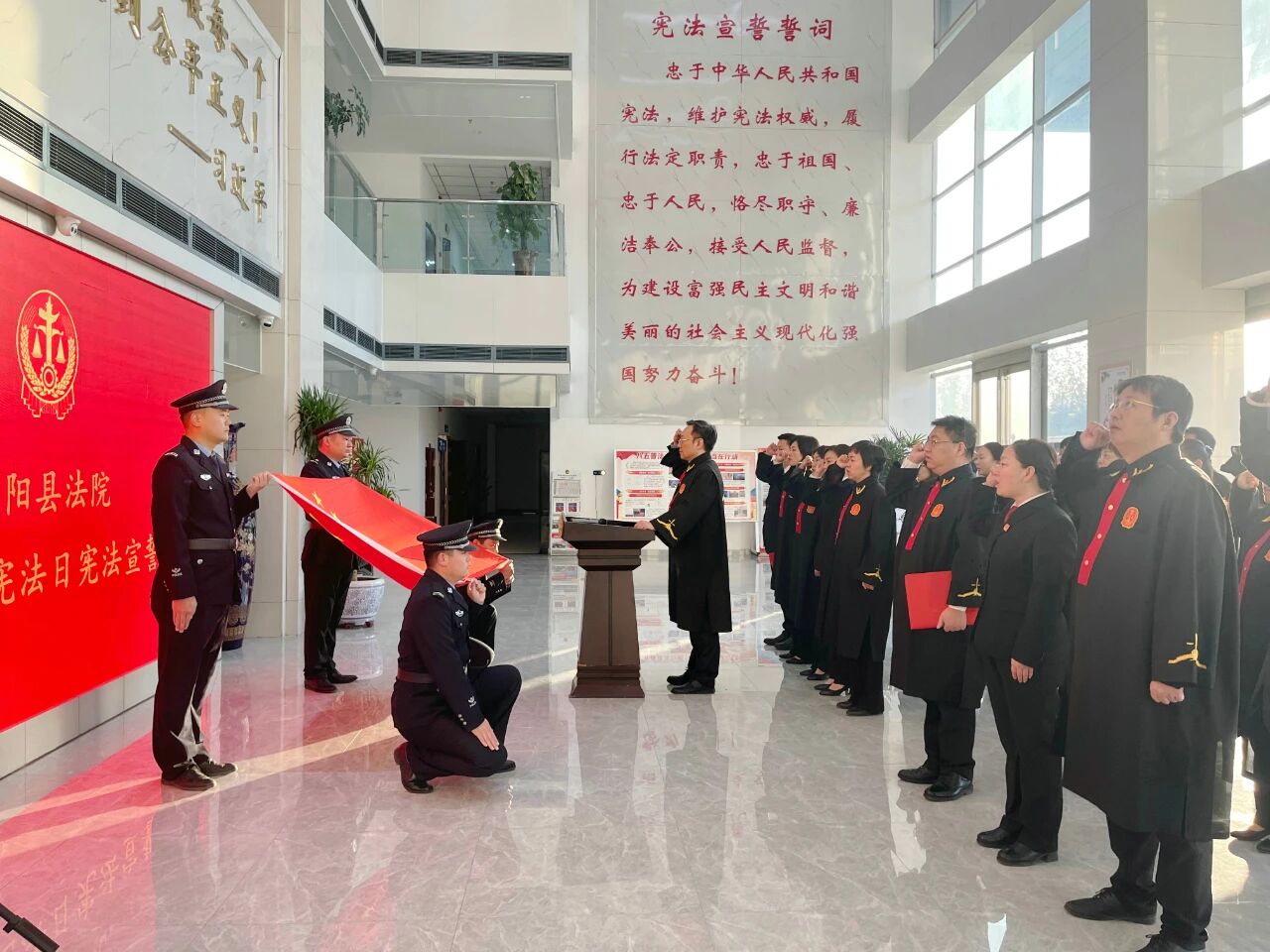 12月4日上午,原阳县法院举行庄严的宪法宣誓仪式。党组书记、院长冯卓群领誓,全体领导班子成员、员额法官参加宣誓仪式。仪式现场,大家整装肃立、精神饱满。“忠于中华人民共和国宪法,维护宪法权威,履行法定职责······” 铿锵有力的誓言在仪式现场回响,表达了对宪法精神、宪法权威和宪法尊严的坚定信仰,汇聚起以审判工作现代化支撑和服务中国式现代化的磅礴力量。