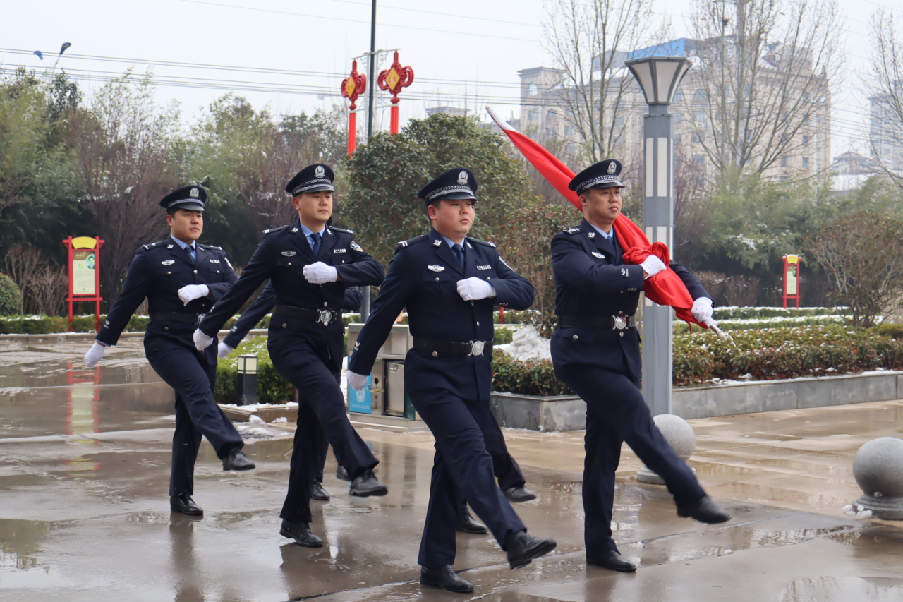 激昂的《义勇军进行曲》奏响,国旗班迈着铿锵整齐的步伐入场就位,鲜艳的五星红旗冉冉升起。全体干警肃立行注目礼,目光追随着飘扬的国旗,心中满是对祖国的崇敬与对司法事业的赤诚,嘹亮的国歌在广场上空回荡,奏响原阳法院人履职担当、砥砺前行的奋进号角。
