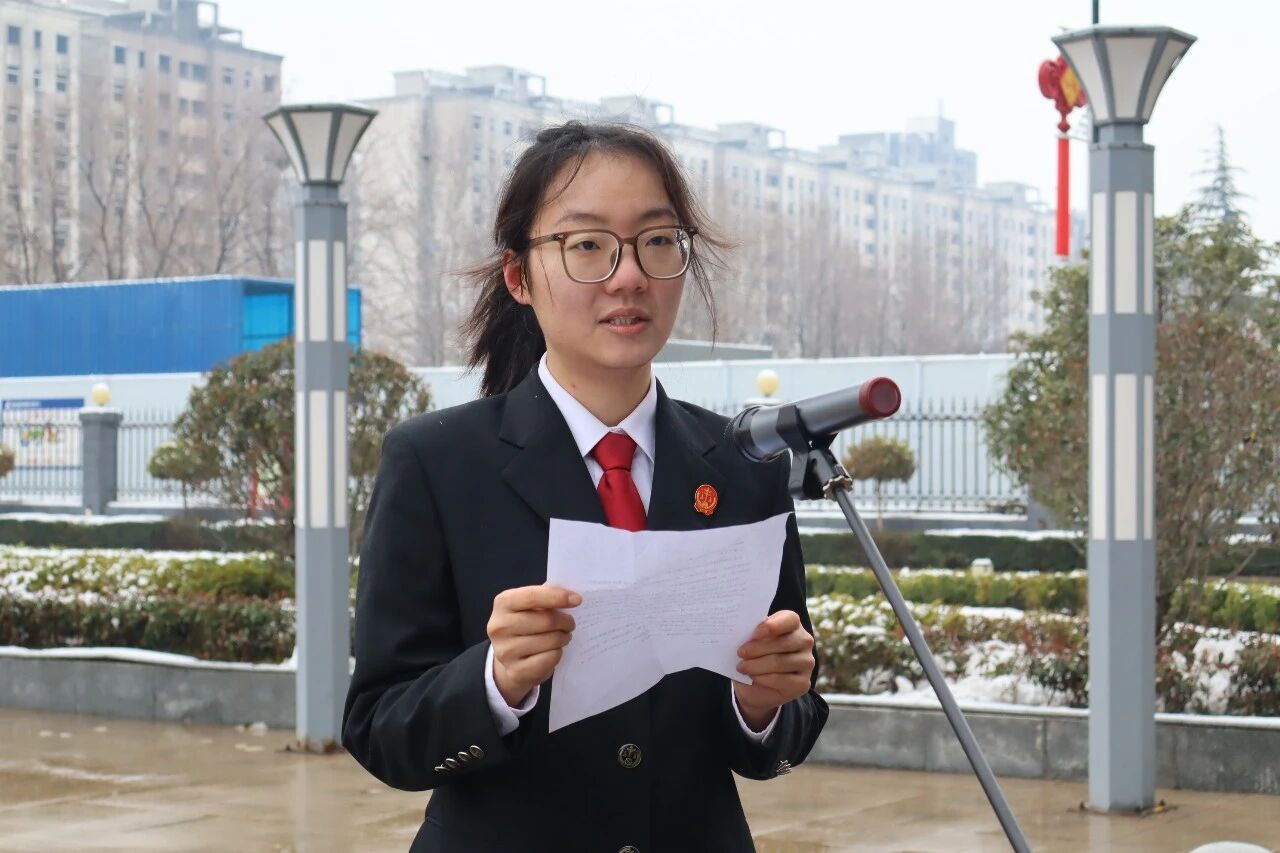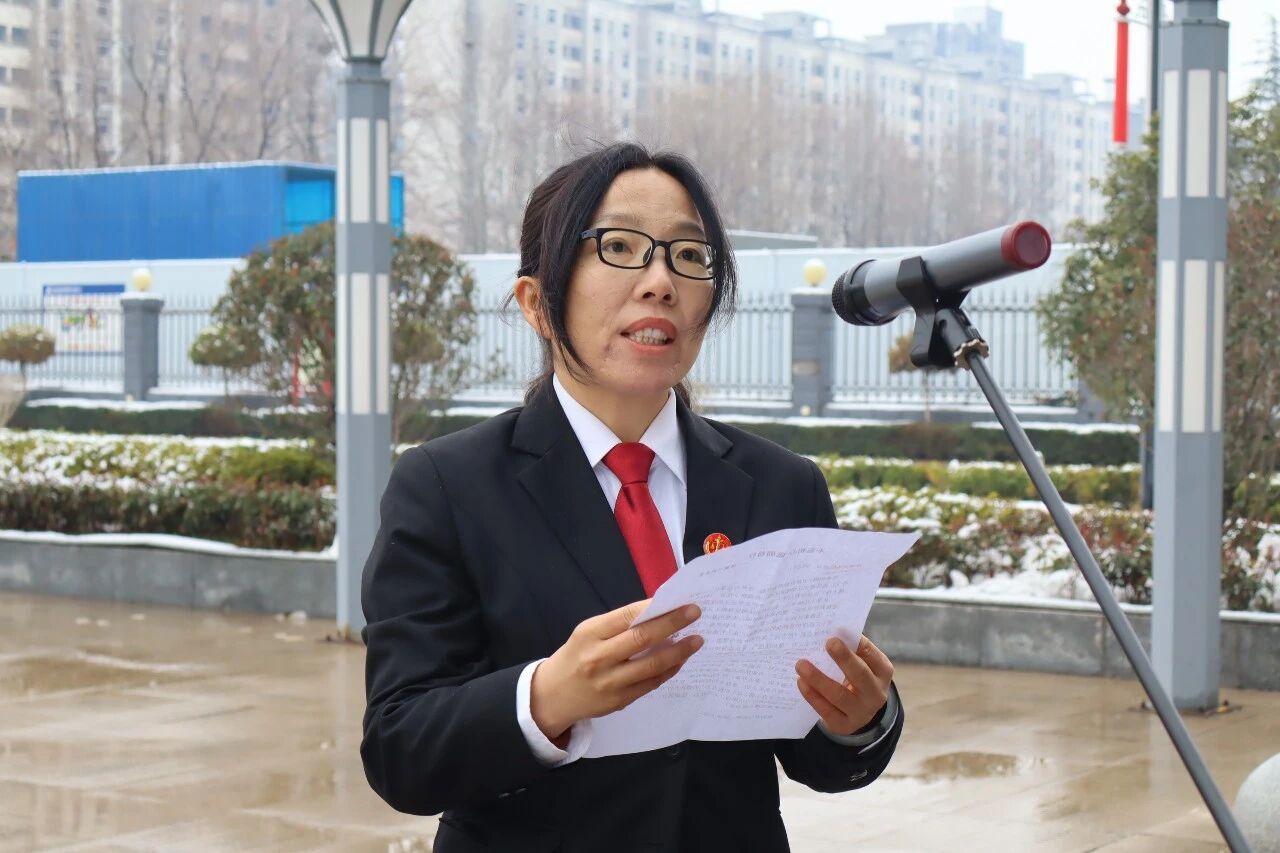 仪式上,耿红霞法官、屈雨涵同志作为干警代表依次发言。两位同志立足审判执行一线,抒发为民情怀、畅谈责任担当,表示将坚守审执岗位,恪守公平正义底线,以实干践行使命,以担当守护初心,奋力书写新时代司法为民新篇章。