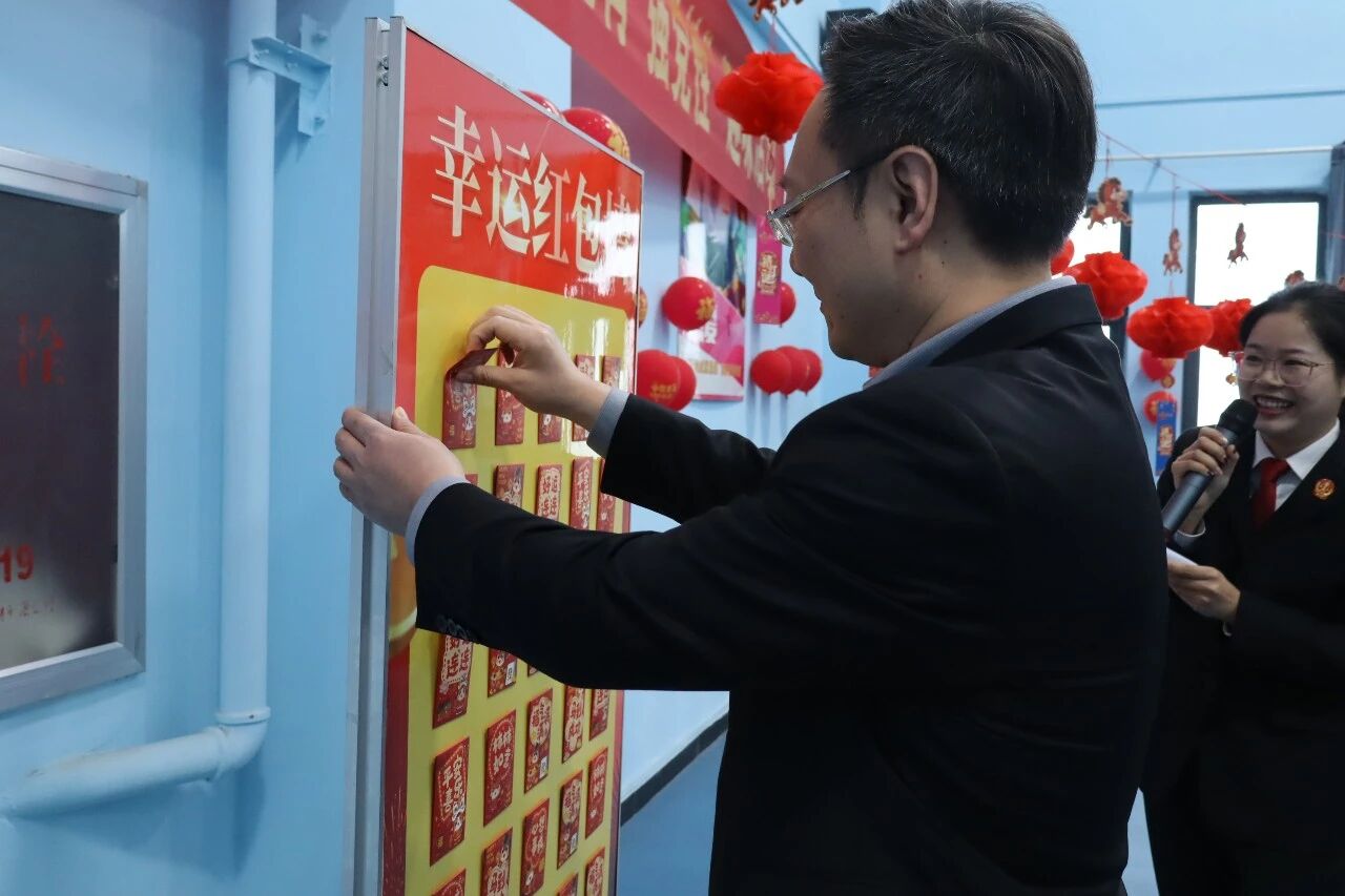 活动现场红灯高挂,灯谜长廊错落有致,处处洋溢着元宵佳节的温馨与热闹。本次灯谜紧扣党建知识、法律常识与传统文化,兼具知识性与趣味性。干警们或驻足沉思、或相互探讨,在轻松愉快的氛围中开动脑筋、踊跃竞猜,猜对谜底后兑换奖品、抽取红包,笑意盈盈、暖意融融,现场处处充满欢声笑语。