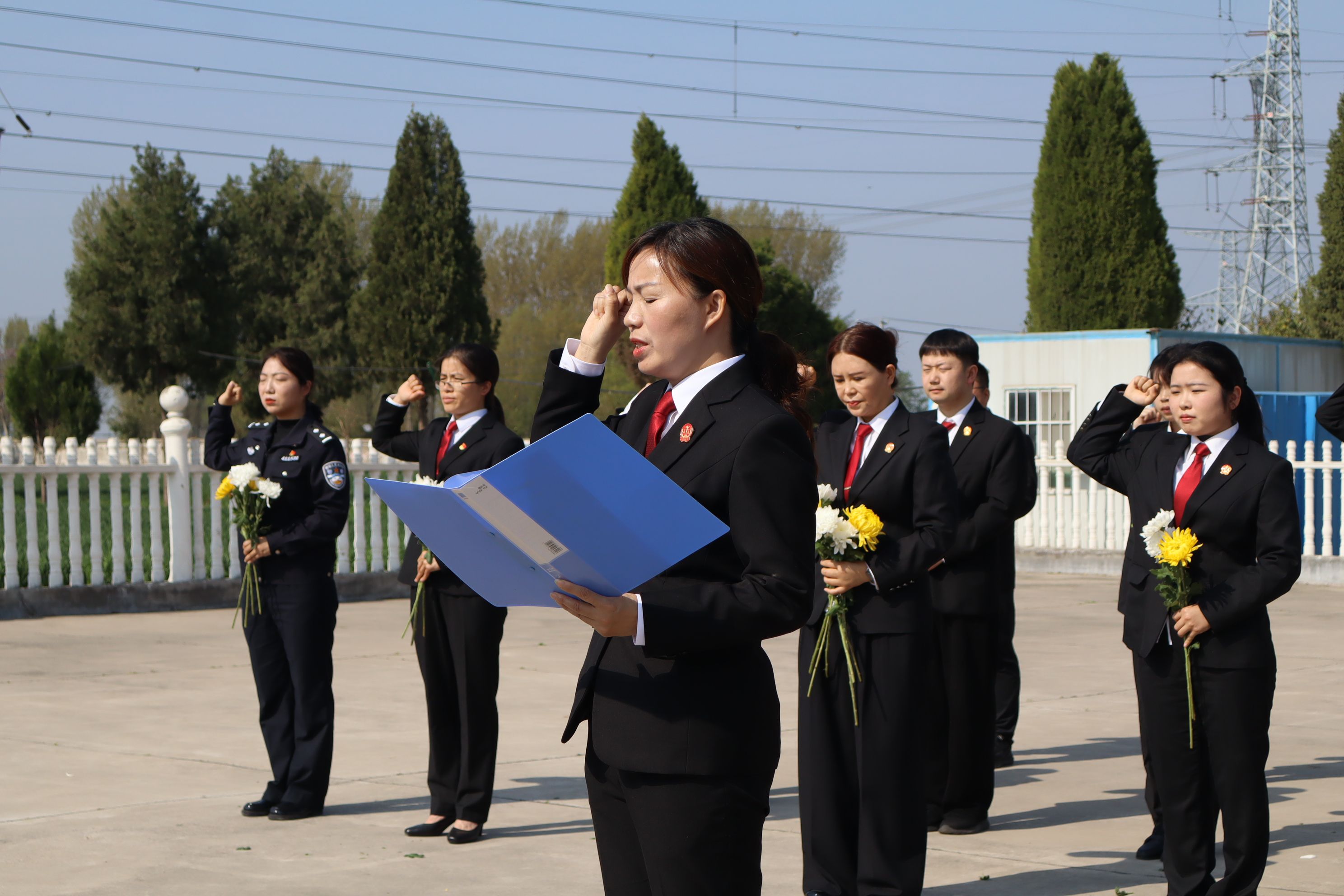 鞠躬礼毕,在刘敏主任的带领下,全体干警高举右拳,进行庄严宣誓。誓言铿锵有力,彰显出新时代原阳县法院干警铭记英烈遗志、忠诚履职担当的坚定信念。